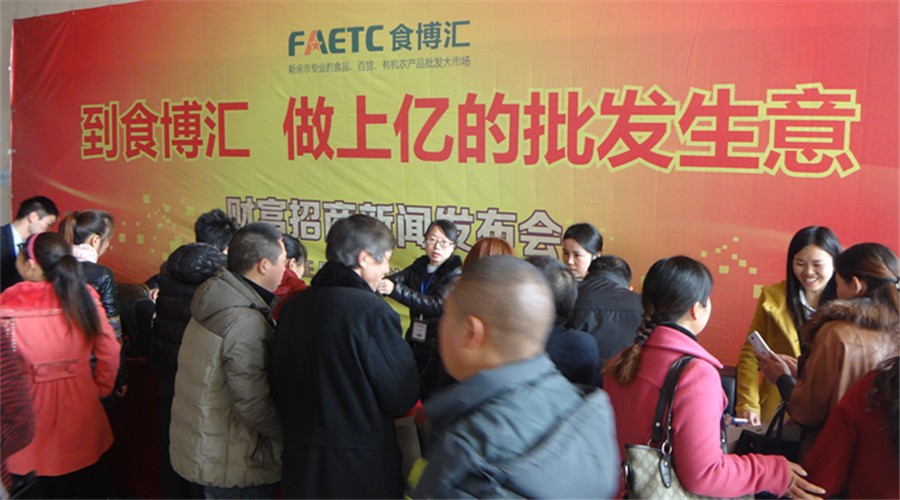 2015年1月15日,主題為“到食博匯,做上億的批發(fā)生意”的食博匯招商新聞發(fā)布會在新余會展中心隆重舉行。新余市各級政府領(lǐng)導(dǎo)、食品百貨行業(yè)協(xié)會領(lǐng)導(dǎo)、新余商盛置業(yè)相關(guān)領(lǐng)導(dǎo)、食博匯戰(zhàn)略合作單位,及近200名國內(nèi)外知名行業(yè)廠商代表、800多位新余當(dāng)?shù)貙?shí)力批發(fā)代理商共同出席了本次活動,一起見證了此次新余副食百貨業(yè)內(nèi)極具意義的盛會。會上,新余市商盛置業(yè)董事長陳生根詳細(xì)介紹了該項(xiàng)目的具體規(guī)劃及未來發(fā)展前景,引發(fā)了與會廠商、代理商的熱烈討論,同時也標(biāo)志著整個贛西地區(qū)的食品百貨行業(yè)將開啟全新的格局。