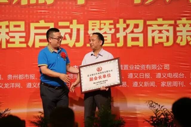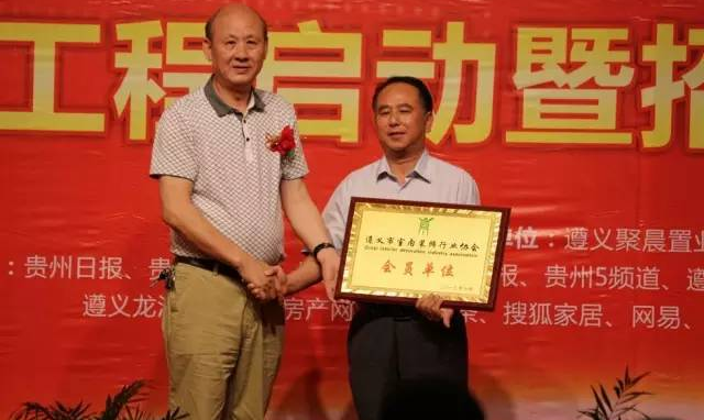 (遵義市室內裝飾協會會長傅會相先生代表協會授予九鼎國際建材家居城 “遵義市室內裝飾協會會員單位”牌匾)