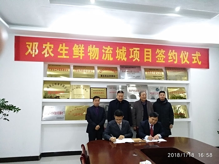 2018年1月18日,河南鄧農食品股份有限公司簽約國內商貿生態(tài)鏈運營專家機構-深圳華錦億爵商業(yè)地產顧問機構,打造“打造本土最具實力的冷鏈生鮮農副產品批發(fā)市場”。