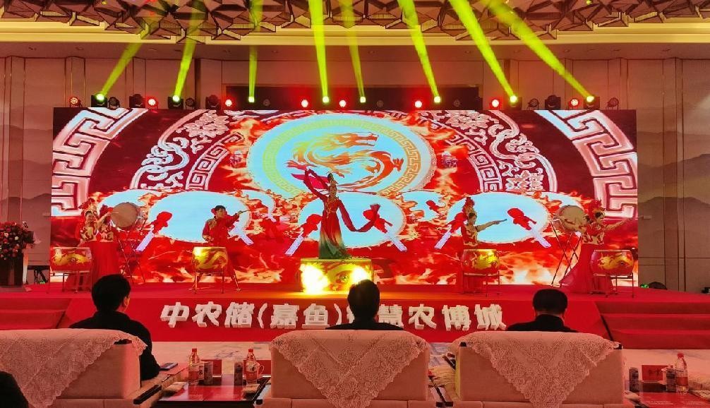 以鼓會(huì)友,鼓動(dòng)未來。中農(nóng)儲(chǔ)·嘉魚智慧農(nóng)博城農(nóng)副產(chǎn)品交易中心項(xiàng)目推介會(huì)在磅礴大氣的《龍鼓舞表演》拉開帷幕。