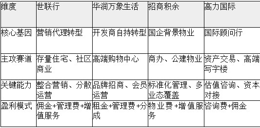 標桿案例:高力國際、招商積余、華潤萬象生活、世聯行